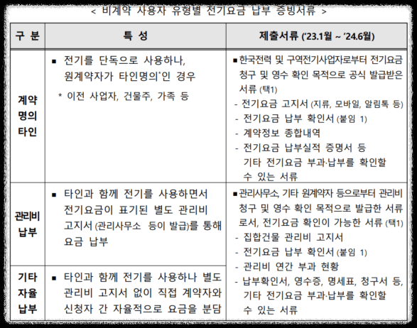 ※ 만약 20만 원 미만일 경우, 23년 1월부터 24년 6월까지 전기요금 영수증 일체